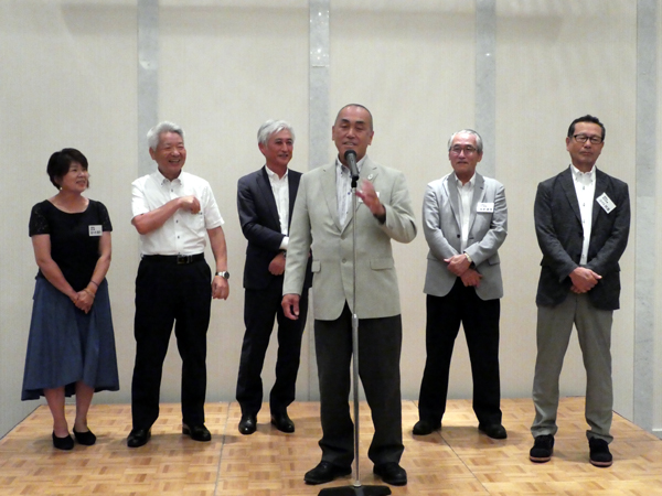 常任理事会終了後、別室にて常任理事会出席者に事業担当理事及び事業協力者を加え、道端会長の挨拶に続き、稲田名誉会長による乾杯の発声で「顔合わせ懇親会」が開宴。令和元年度新たな体制での事業推進に向けて、力強いスタートとなった。